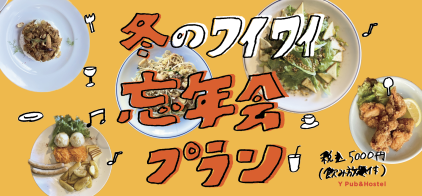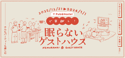 12月のY Pub&Hostelの営業時間を案内します。クリスマスや忘年会、帰省ついでに山陰旅行をする人もいて賑...